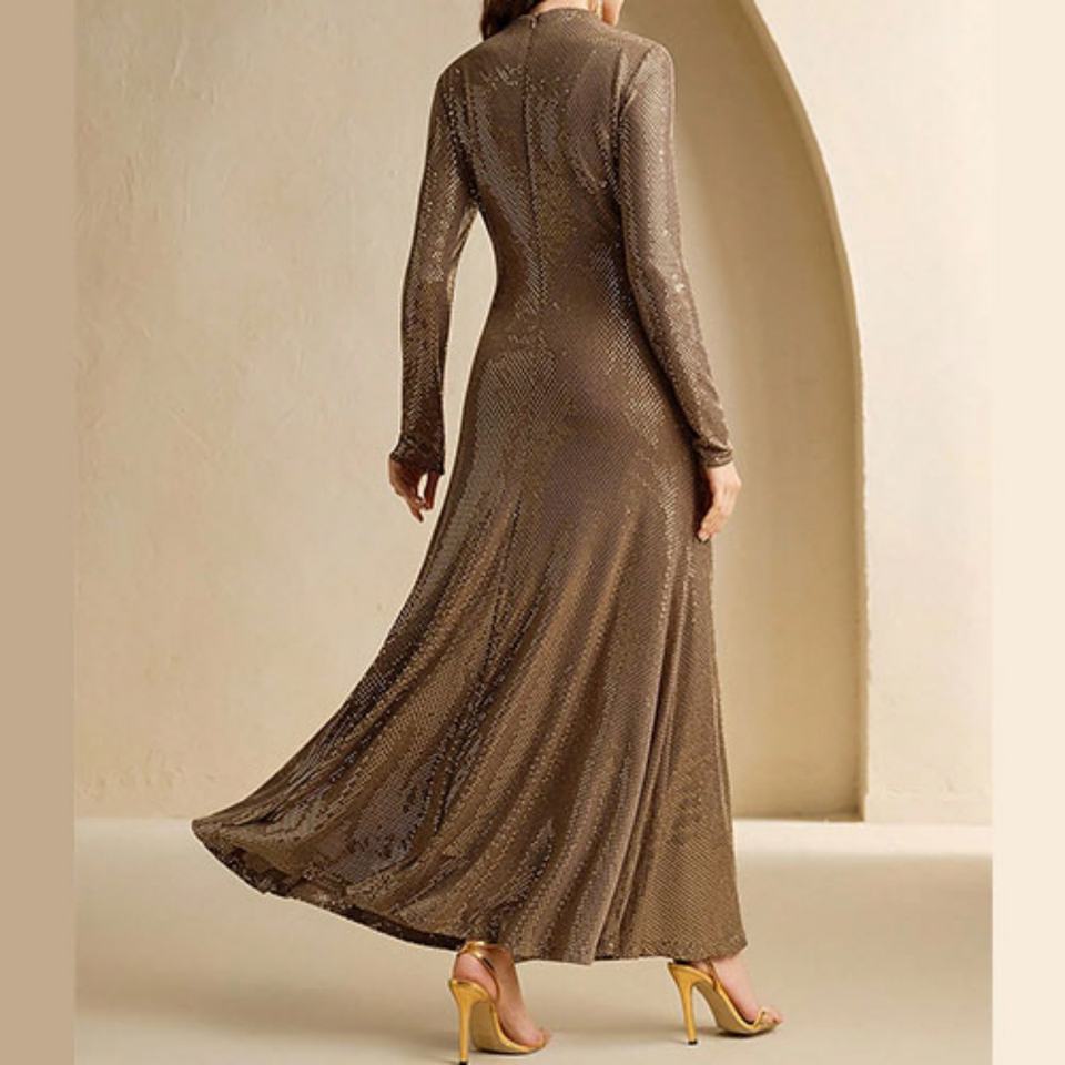 เดรสยาวแฟชั่นฤดูใบไม้ร่วงฤดูหนาวใหม่ ประดับเพชร แต่งระบาย แขนยาว ทรงเข้ารูป สำหรับผู้หญิง