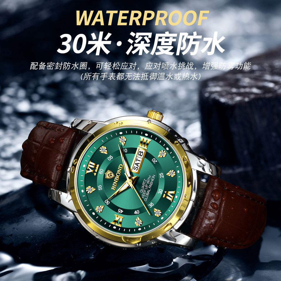 ลักษณะ:โครโนกราฟ, วัน / วัน, กันน้ำ, กันน้ำ, เรืองแสง, สัปดาห์แสดง, มือส่องสว่าง, หยุดนาฬิกา