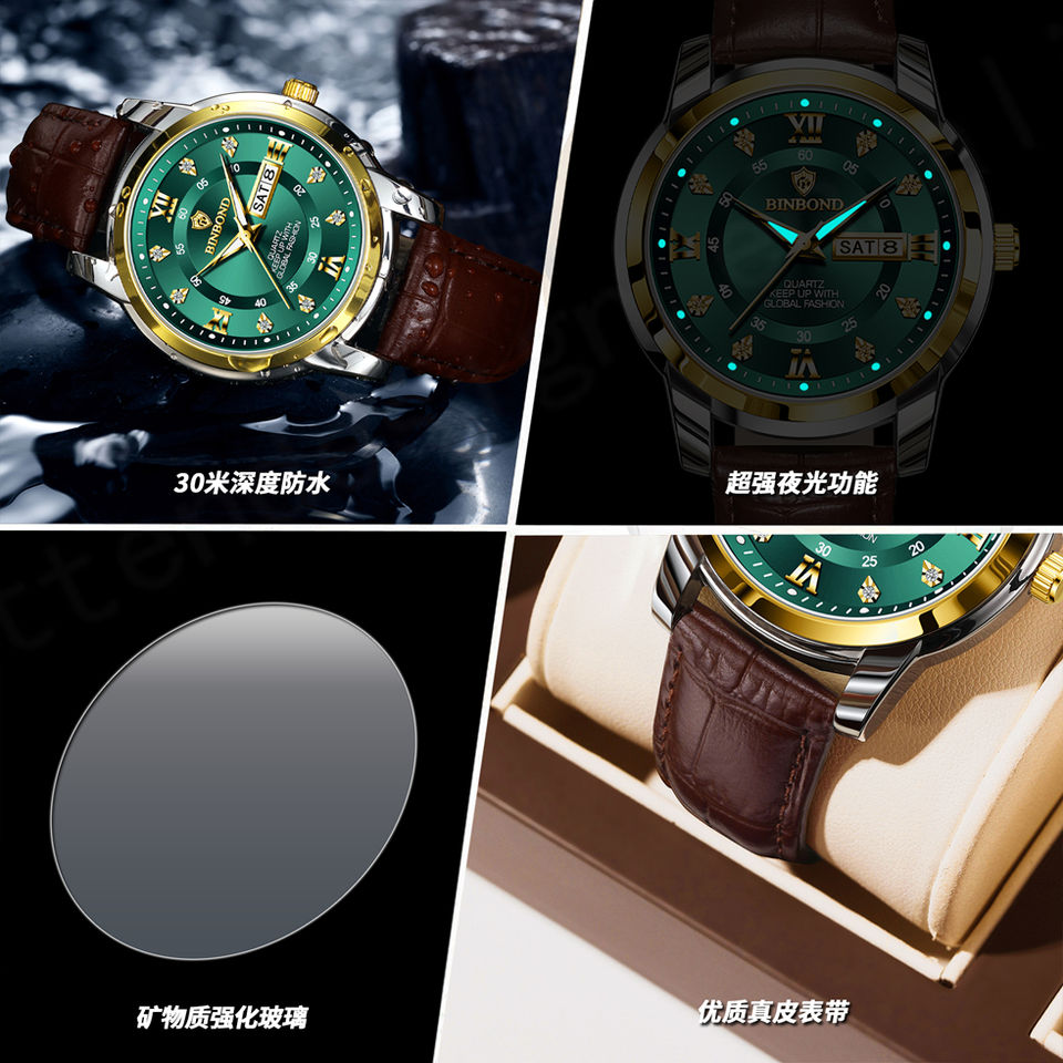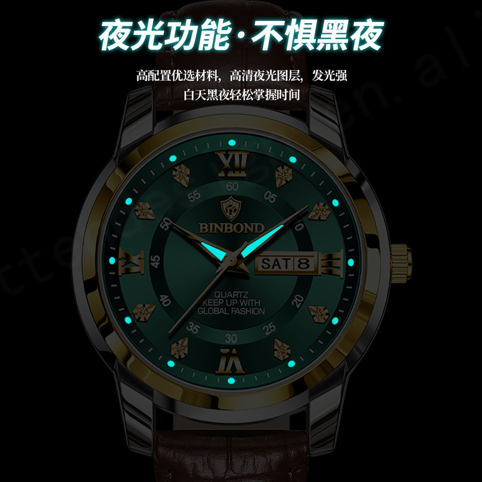 ใหม่นาฬิกา binbond ผู้ชายเทรนด์แฟชั่นแหวนดาวหน้าปัดหนังแท้กันน้ำนาฬิกาควอทซ์สำหรับผู้ชาย7169