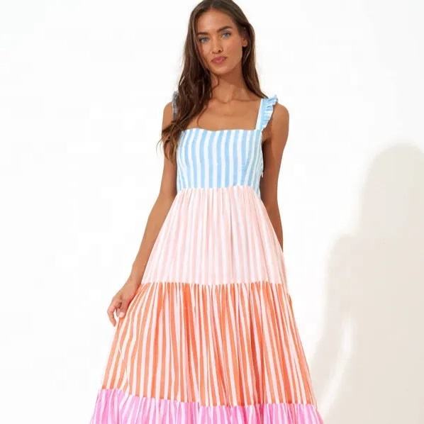 ออกแบบใหม่เปลือยฤดูร้อนสวมใส่หลากสีปอกแขนยาวแม็กซี่ชายหาดสวมใส่ชุดสําหรับผู้หญิงพรรคชายหาด