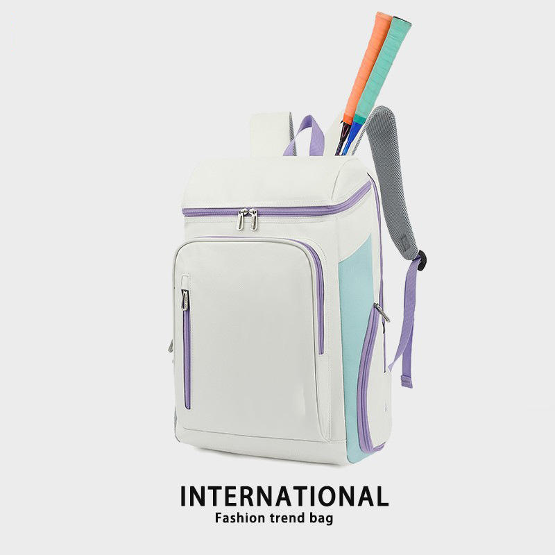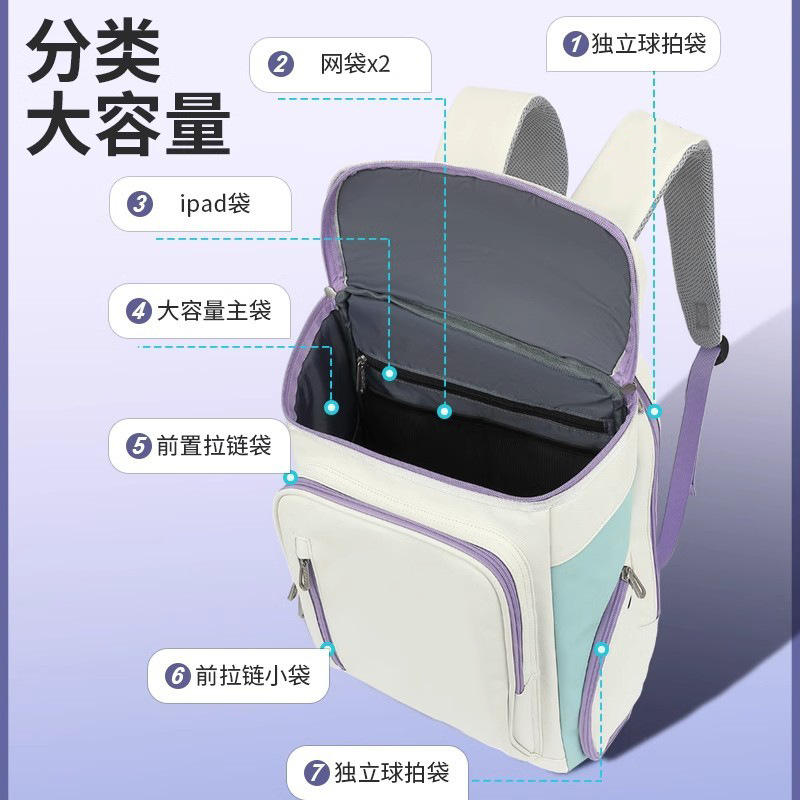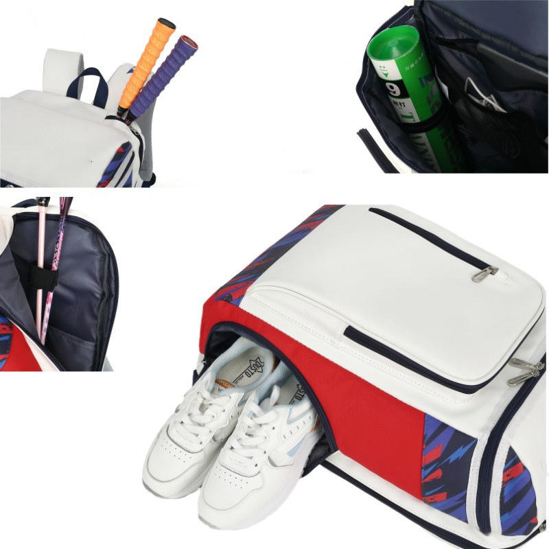 กระเป๋าเป้สะพายหลังแบดมินตันรุ่นใหม่ สีขาวและสีน้ำเงิน กันน้ำ พร้อมช่องซิป สำหรับการฝึกซ้อมและการใช้งานในชีวิตประจำวัน ฤดูร้อน 2024