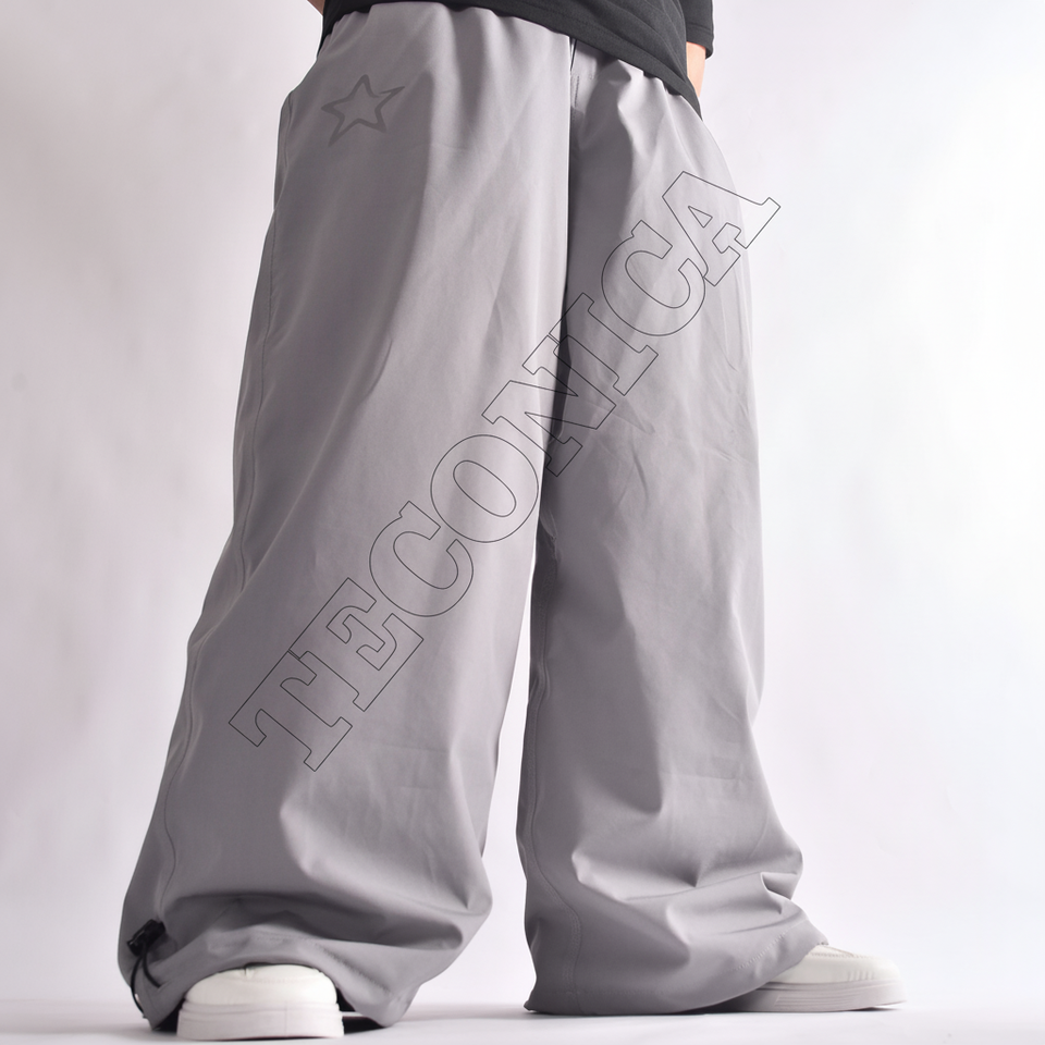 กางเกงสกีกันน้ำสีเทาน้ำหนักเบามีช่องระบายอากาศพร้อมแถบคาดเอวยางยืดระบายอากาศและกระเป๋ามีซิปดีไซน์แบบหลวมๆ
