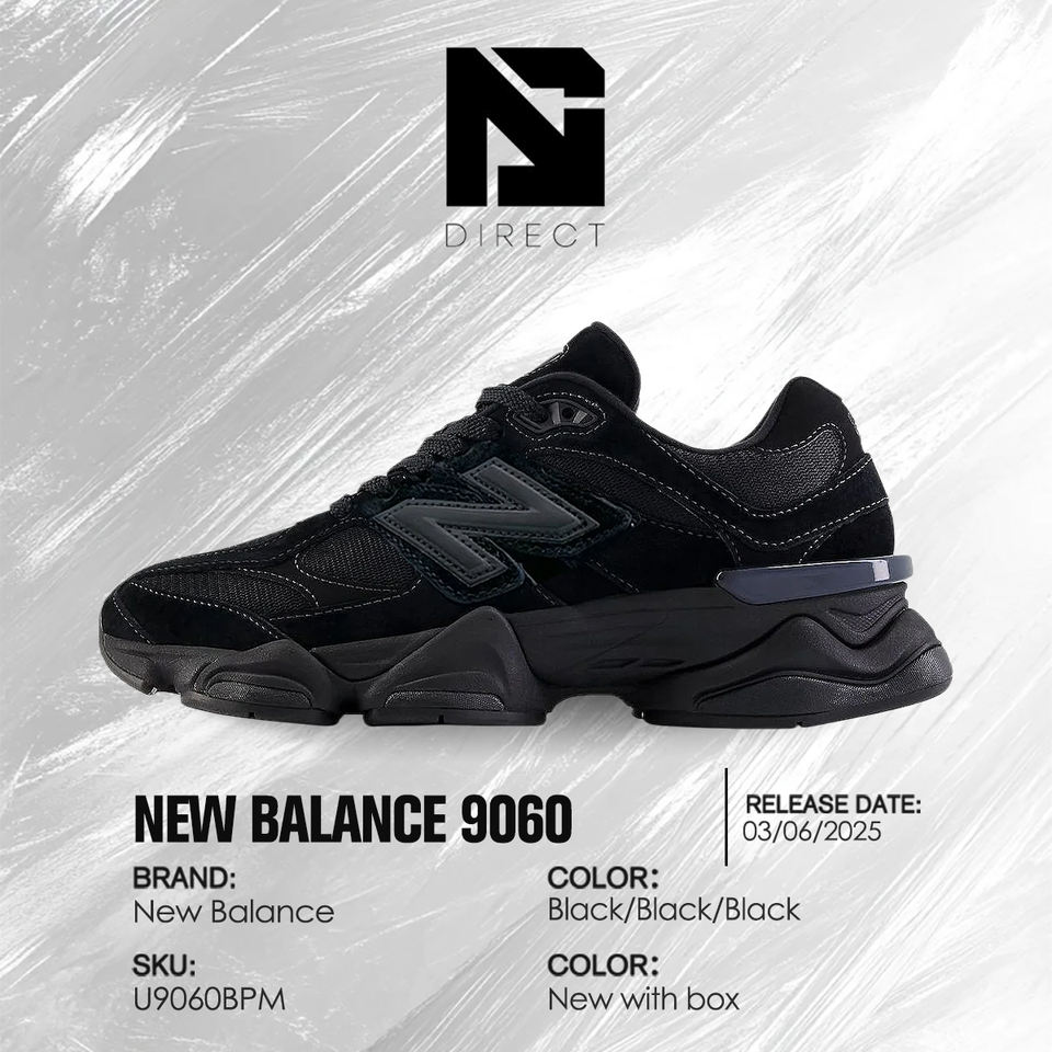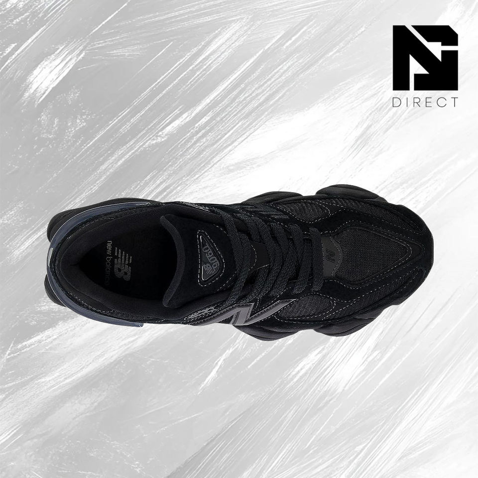 นิวบาลานซ์ 9060 ทริปเปิลแบล็คหนังกลับดีไซน์ดั้งเดิมรองเท้าผ้าใบสำหรับฝึกซ้อมรองเท้าลำลองสุดหรู