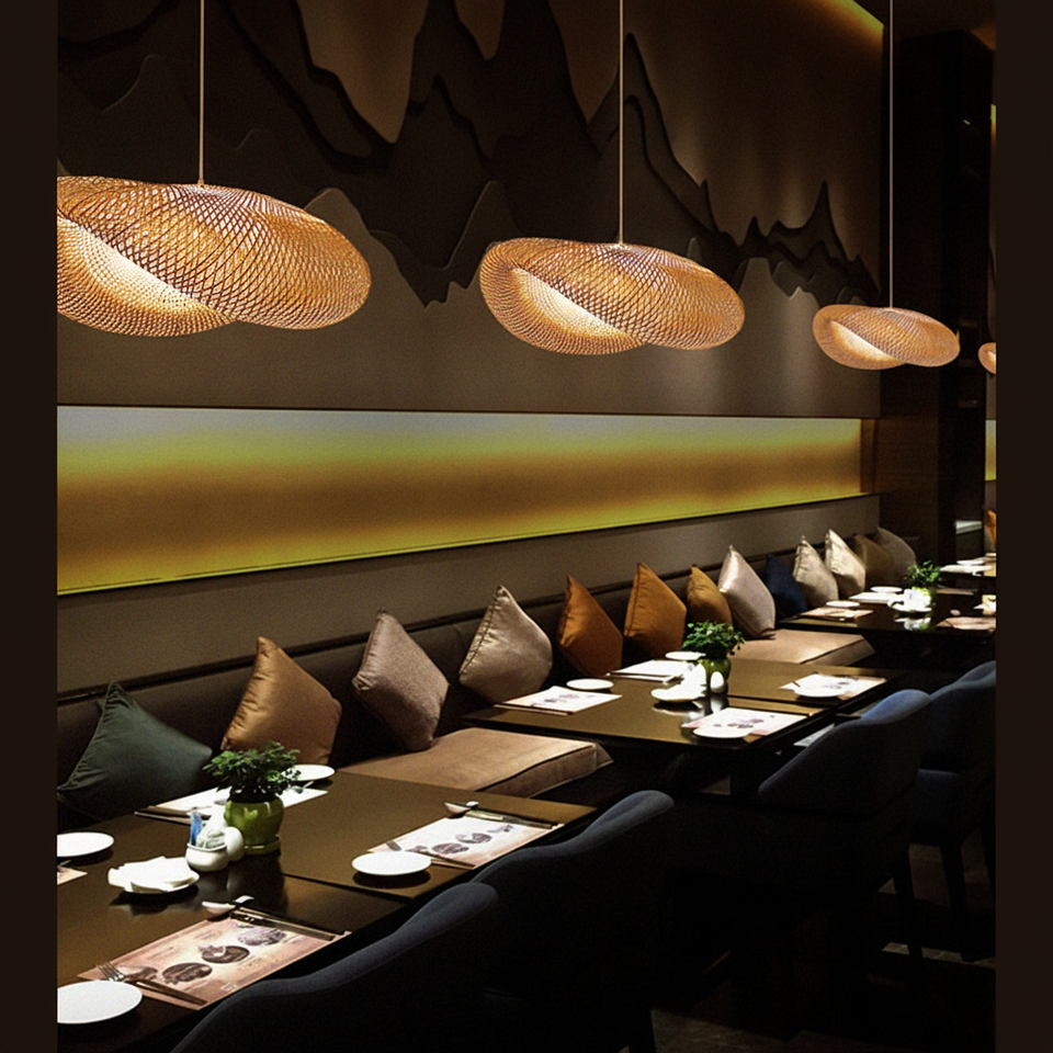 โคมไฟหวายจากไม้ไผ่สไตล์ญี่ปุ่นแบบมินิมอลโคมไฟแขวนเพดานของตกแต่งบ้าน