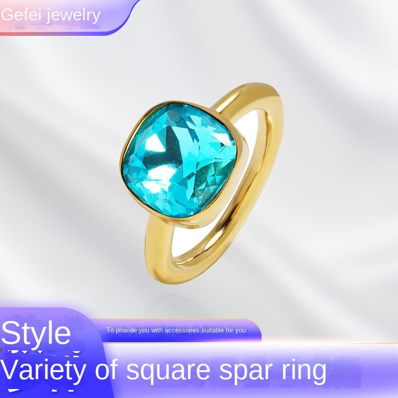 แหวนคริสตัลทรงสี่เหลี่ยมจัตุรัสแบบใหม่ ดีไซน์ทันสมัย โดดเด่น ระยิบระยับ หลายเหลี่ยม ผลิตจากทังสเตนและสแตนเลส เหมาะสำหรับทั้งชายและหญิง