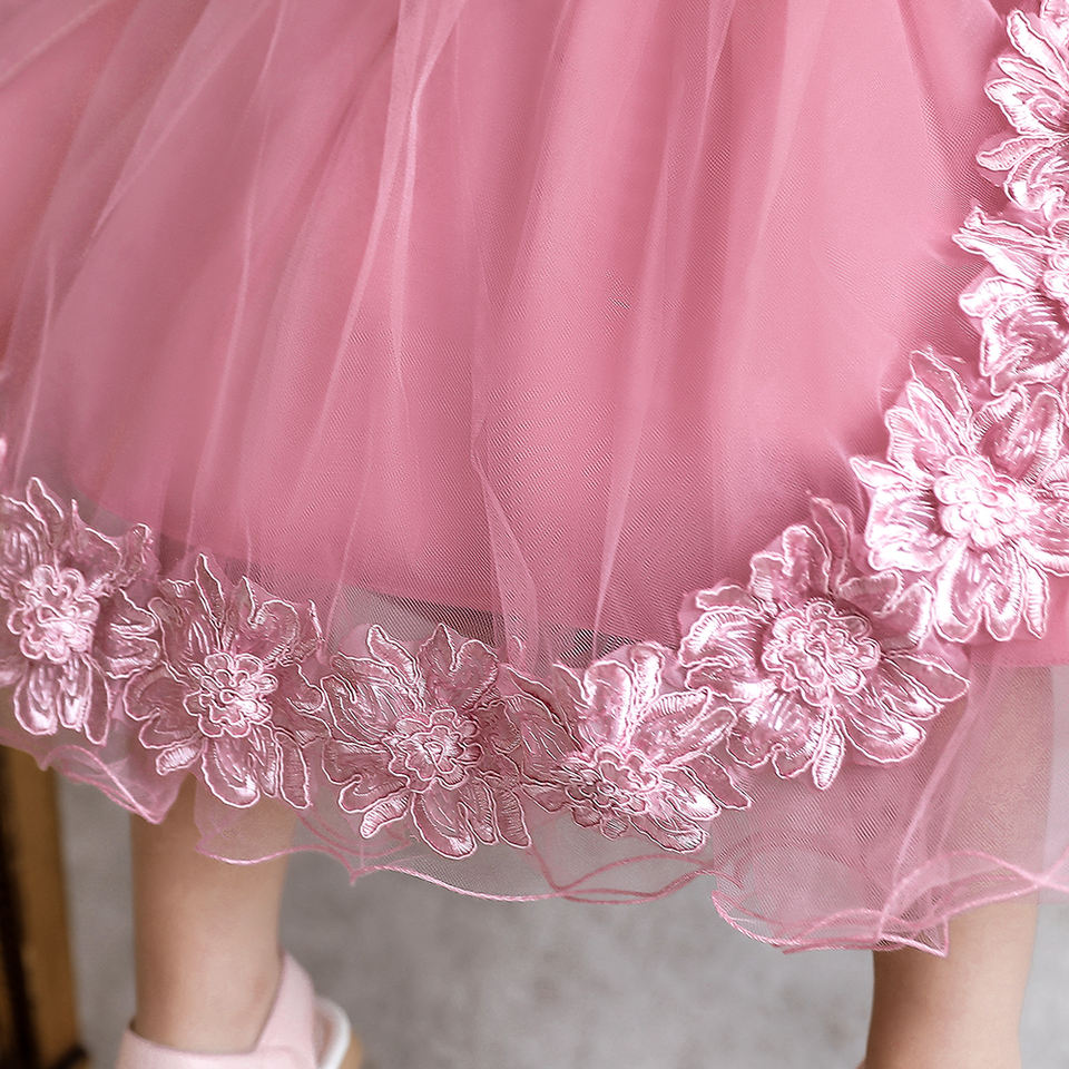 ชุดเดรสผ้าซาตินสำหรับเด็กผู้หญิงแบบเป็นทางการ ลายดอกไม้ปัก สำหรับงานแต่งงาน งานวันเกิดครบรอบ 1 ปี หรือพิธีรับศีลล้างบาป