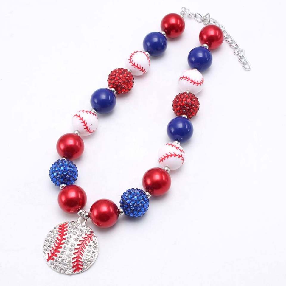 ใหม่จี้เบสบอลสร้อยคอเด็กอเมริกันวันอิสระสร้อยคอลูกปัดเด็ก