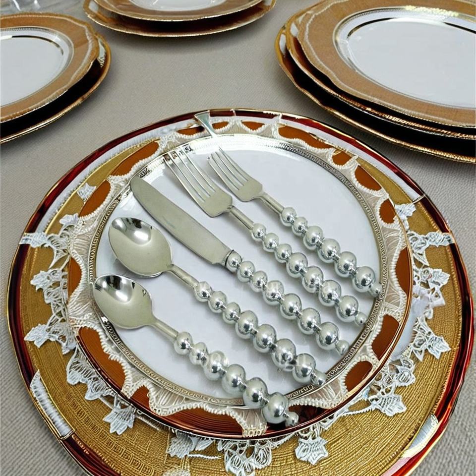 ชุดเครื่องใช้บนโต๊ะอาหารสุดหรูดีไซน์ลูกปัดเหล็กกระจกพกพาได้ชุดช้อนและส้อมโลหะพร้อมชุดมีดครัว
