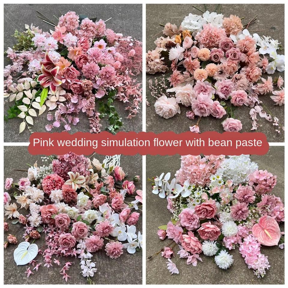 ที่วางถั่วดอกไม้ปลอมสีชมพูสำหรับตกแต่งงานแต่งงานทำจากเนื้อสกปรกใช้ติดถนนงานแต่งงานสีชมพู