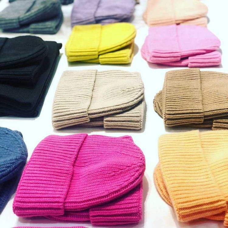หมวกบีนนี่แบบใหม่สำหรับผู้ชายผู้หญิงสายยาวอะคริลิคเมอริโน/ผ้าฝ้ายถักหมวกแคชเมียร์ออกแบบโลโก้