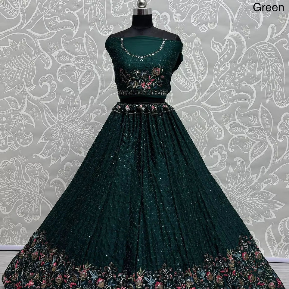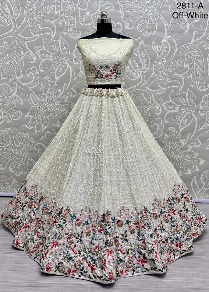 Lehenga สำหรับเจ้าสาวงานปักลายดอกไม้สวยๆ