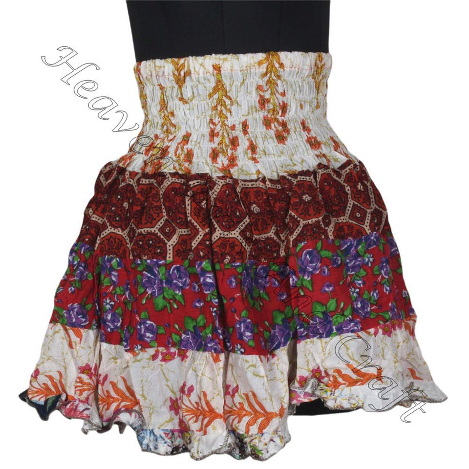 กระโปรงสั้นขนาดเล็กสำหรับผู้หญิงกระโปรงมินิหลากสีสันสไตล์โบโฮแบบอินเดียสำหรับฤดูร้อนใหม่กระโปรงสั้นผ้าคอตตอนผ้าพันหลากสีและมีสไตล์
