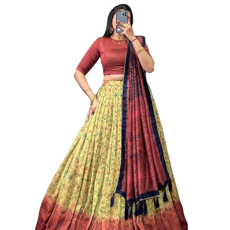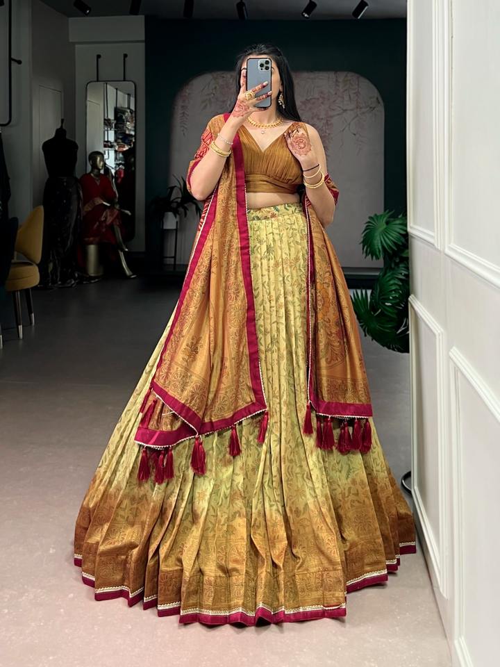 ชุดเลเฮนกาผ้าไหมวิชิตราใหม่สวยงาม พร้อมเลื่อมประดับอย่างวิจิตรและงานปักดิ้นด้วยด้าย สำหรับงานแต่งงาน