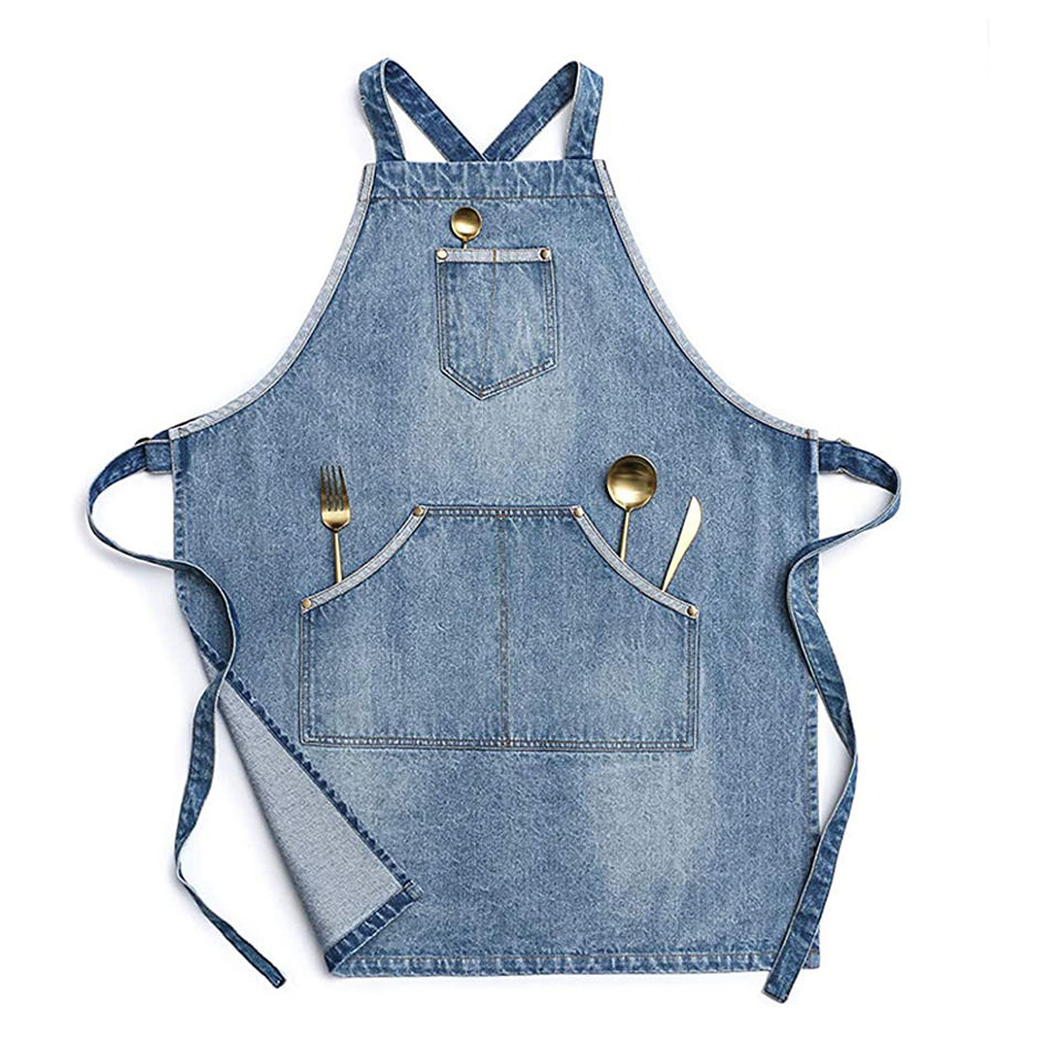 ผ้ากันเปื้อนสำหรับทำอาหารผ้าฝ้ายออกแบบโลโก้ได้ตามต้องการมีกระเป๋า