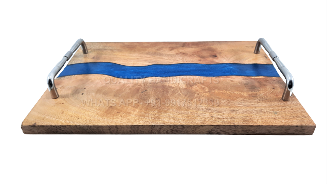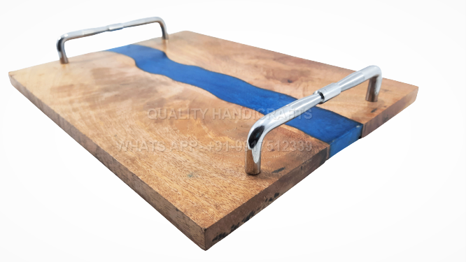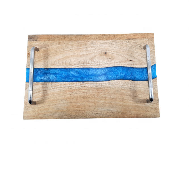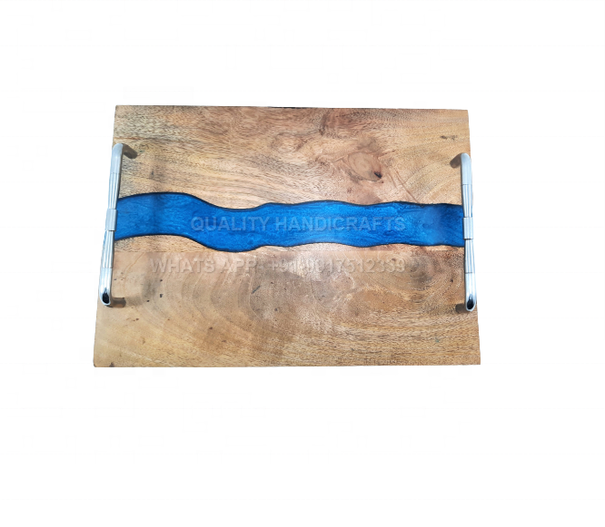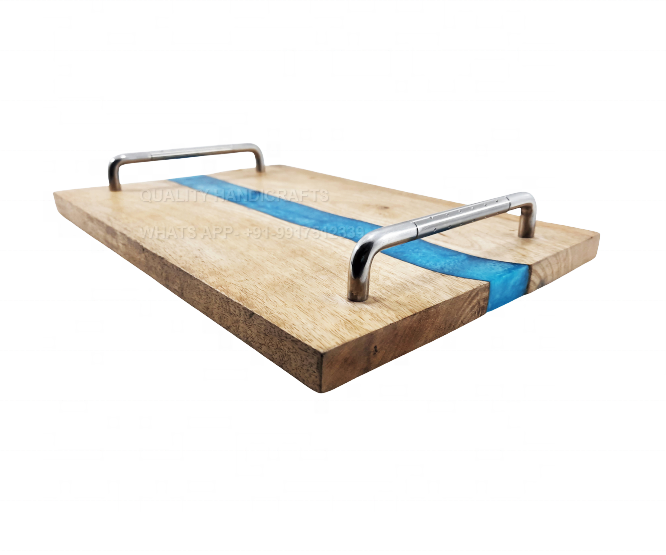 ถาดเสิร์ฟไม้มะม่วงทรงสี่เหลี่ยมผืนผ้าสำหรับห้องครัวและร้านอาหารงานฝีมือคุณภาพดีไซน์เรซินอีพ็อกซี่ริเวอร์