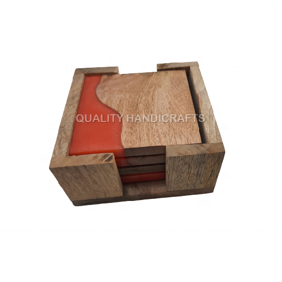 4 Pcs Set Mango Wood & Resin Coaster