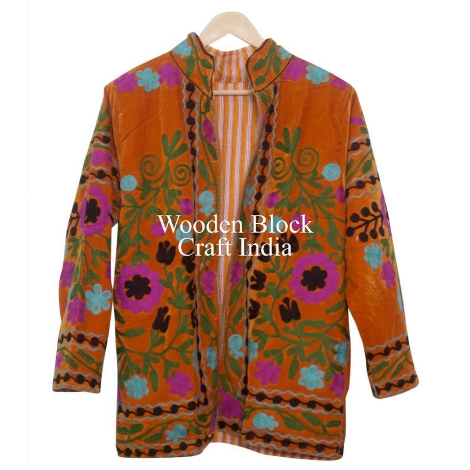เสื้อแจ็คเก็ตกำมะหยี่ปักมือลายดอกไม้สไตล์โบฮีเมียน สำหรับเทศกาล แจ็คเก็ตฤดูหนาวอุ่นๆ ของขวัญสำหรับผู้หญิง