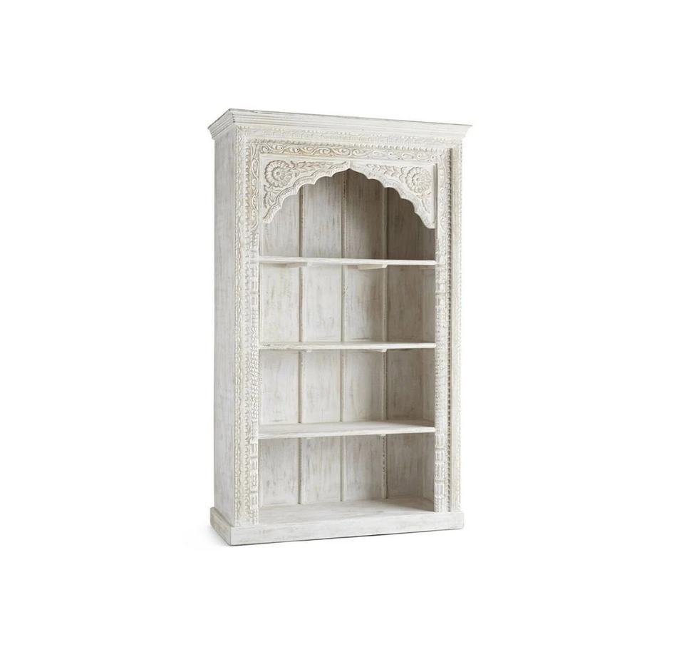 เฟอร์นิเจอร์วินเทจ ดีไซน์ใหม่ ชั้นวางหนังสือไม้เนื้อแข็งแกะสลักด้วยมือ รูปทรงโค้งแบบหน้าต่าง สไตล์โบราณ สำหรับโชว์หนังสือ ตู้หนังสือ ชั้นวางหนังสือ