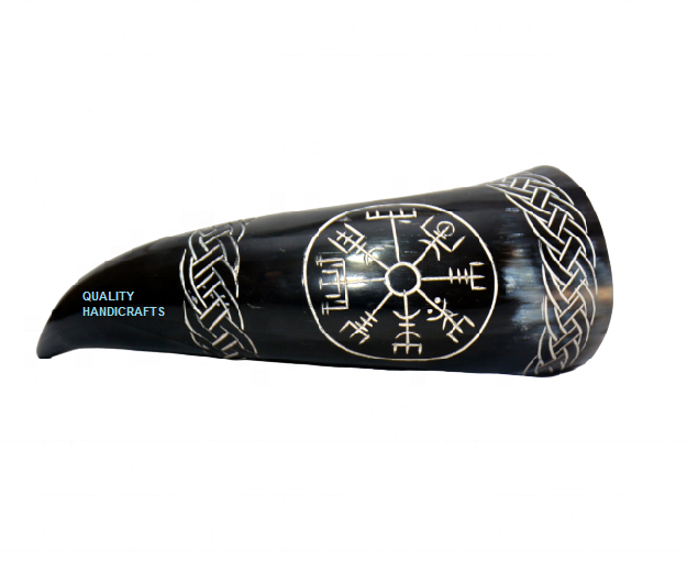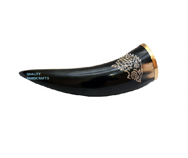 ฮอร์นแกะสลักรูปควายไวกิ้งขอบทองเหลือง12-15นิ้วความจุ300-400มล. สินค้าใหม่