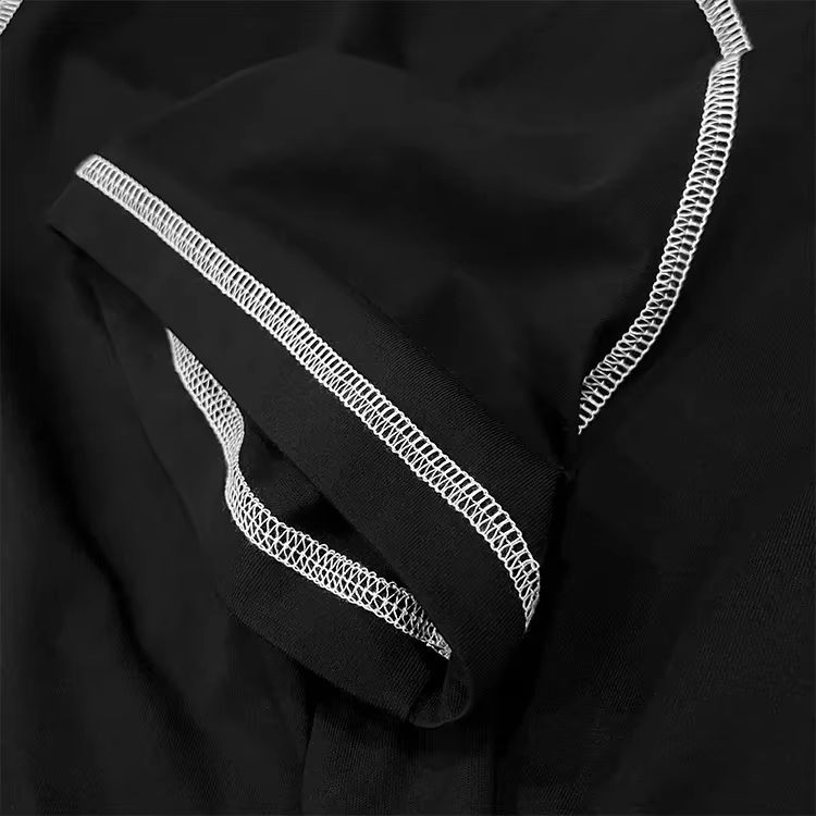 เสื้อยืดผู้ชายแขนสั้นสีดำสวยงาม รุ่นวินเทจ คุณภาพดีเยี่ยม ดีไซน์ตัดต่อสีสัน แนวสปอร์ต น้ำหนักมาก