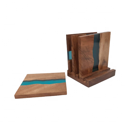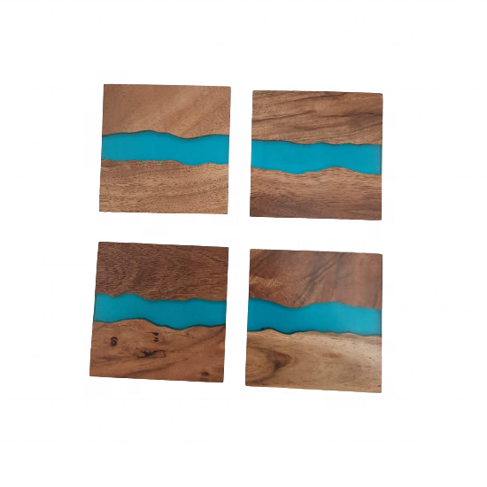 ถาดรองแก้วไม้ทรงสี่เหลี่ยมดีไซน์ใหม่4ชิ้นทำจากไม้อีพ็อกซี่เรซิ่น