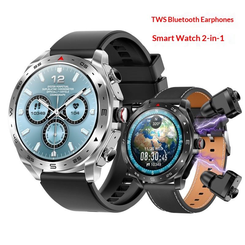 สมาร์ทวอทช์รุ่นใหม่ที่ดีที่สุด สายหนัง พร้อมหูฟัง 2-in-1 และสมาร์ทวอทช์ติดตามการออกกำลังกาย พร้อมเครื่องวัดอัตราการเต้นของหัวใจ