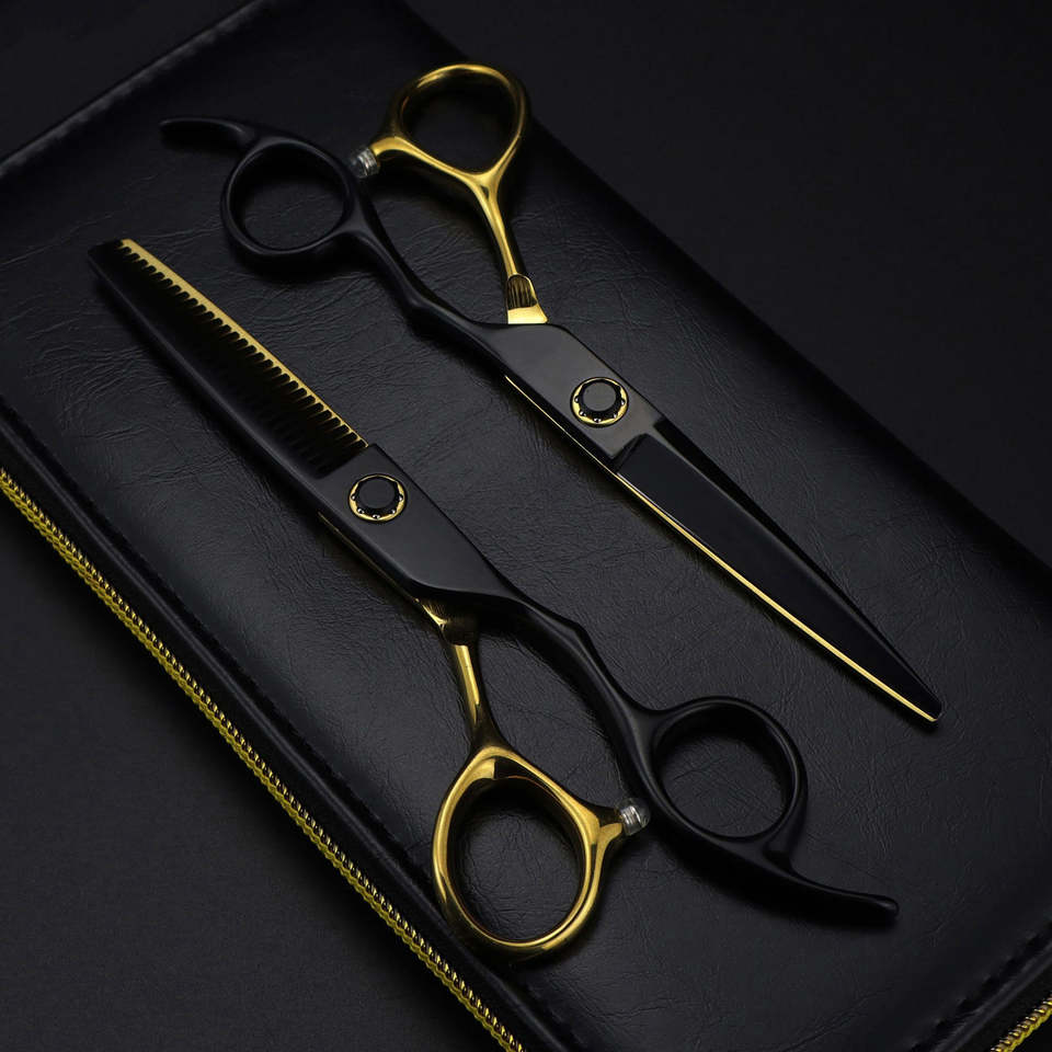 กรรไกรตัดผมมืออาชีพสแตนเลสคุณภาพดีรุ่นใหม่ ขนาด 6.0 นิ้ว สีดำ-ทอง ปรับแต่งได้ ชุดอุปกรณ์ตัดผม ANAAIF 2026