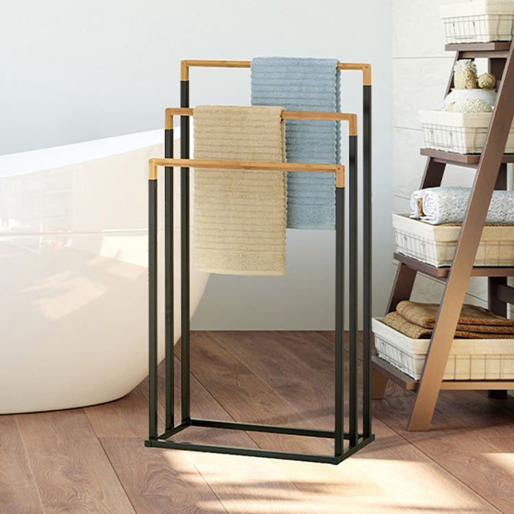 New Black Bath Towel Stand Free Standing Household Bathroom Towel Racks Bamboo Towel Rack