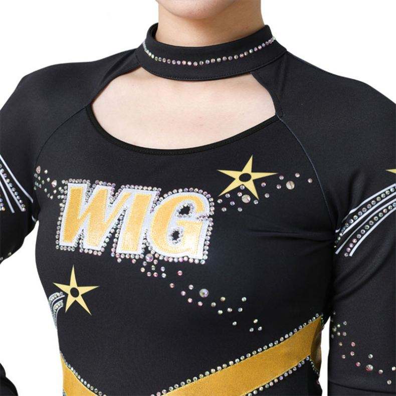 New Black Customized Unisex Adult Cheerleading Uniform Fabric Digital Print Stereoscopic Cutting Technology for Cheerleading