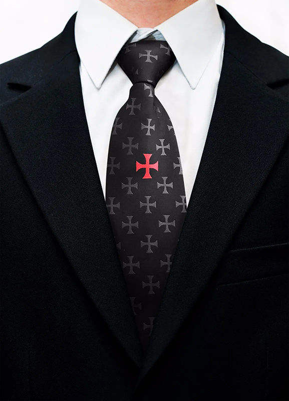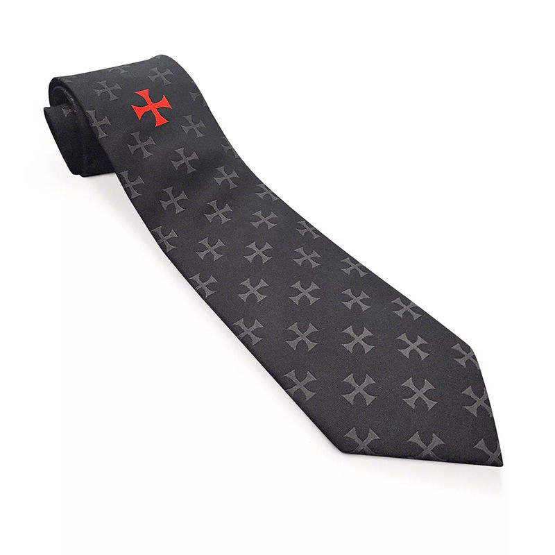 เนคไทผ้าไหมลายอัศวินเทมพลาร์สีดำแบบใหม่ ผลิตตามสั่งสำหรับผู้ชาย เครื่องประดับศีรษะแบบพิเศษ เนคไทสั่งทำเฉพาะบุคคล