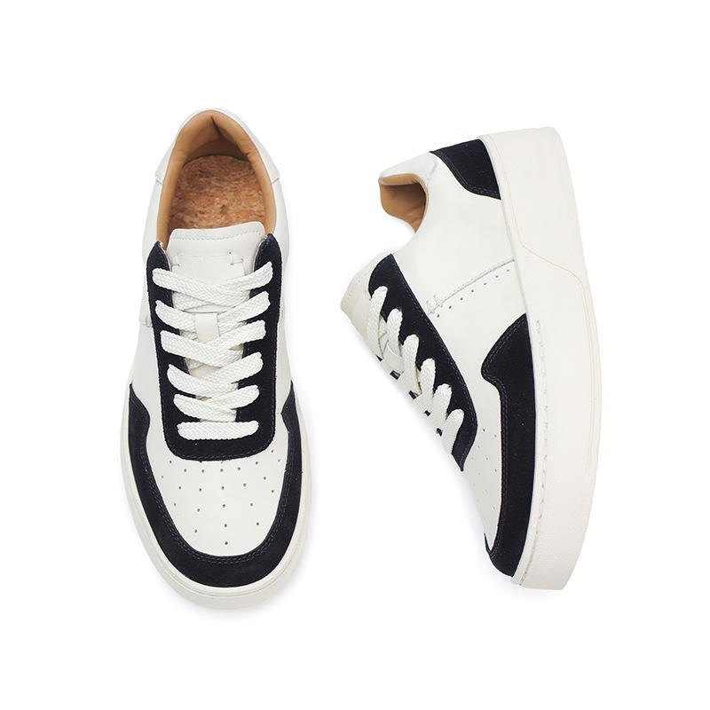 รองเท้าเดินแบบสวมสบาย หนังแท้ ลายทางขาวดำ กันลื่น ระบายอากาศได้ดี แบบผูกเชือกและสวมได้ทุกโอกาส
