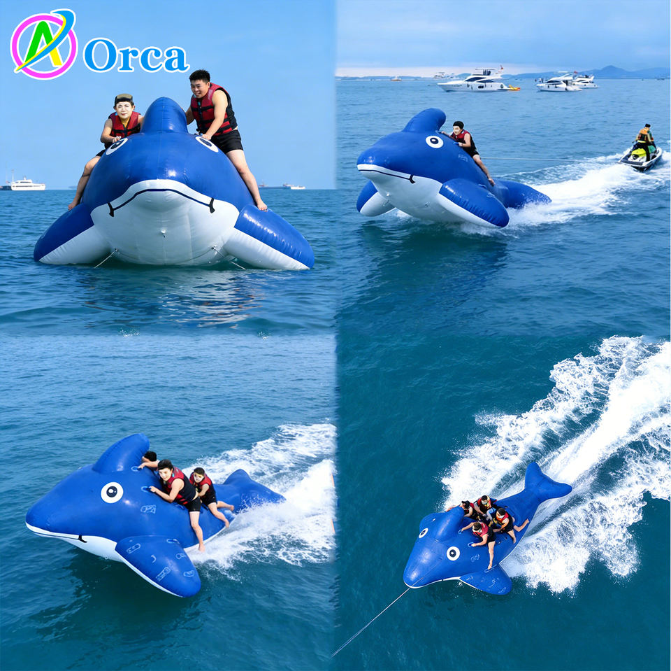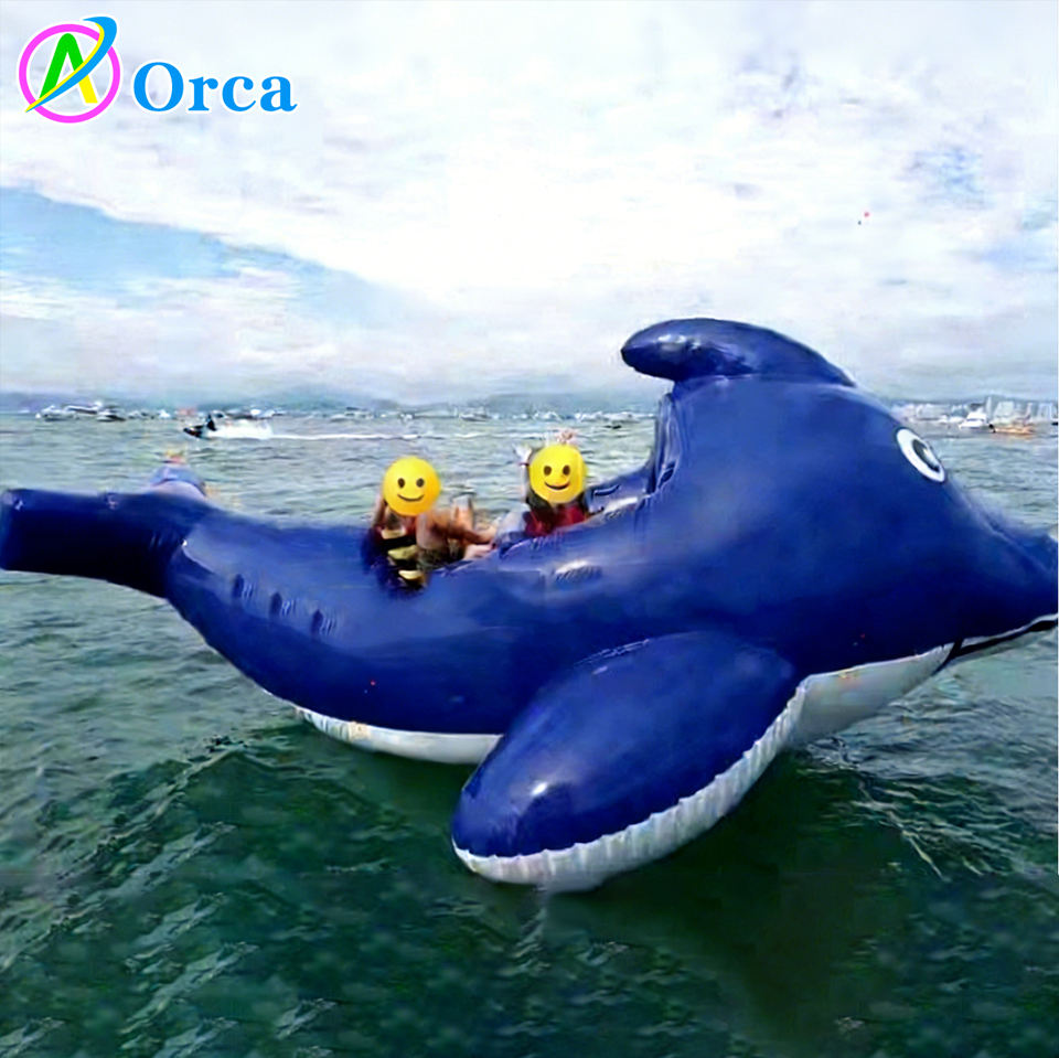 เรือลากจูงรูปวาฬสีน้ำเงินแบบเป่าลมใหม่ เรือเป่าลมรูปสัตว์วาฬ เรือลอยน้ำเป่าลม ของเล่นลากจูงเป่าลม เกมกีฬาทางน้ำ