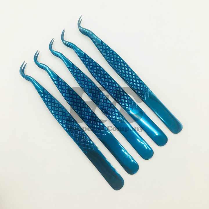 คีมหนีบขนตาพลาสม่าสีน้ำเงินแบบใหม่แหนบถอนขนตาสแตนเลสพร้อมแหนบปลายแหลมโลโก้อย่างยั่งยืน