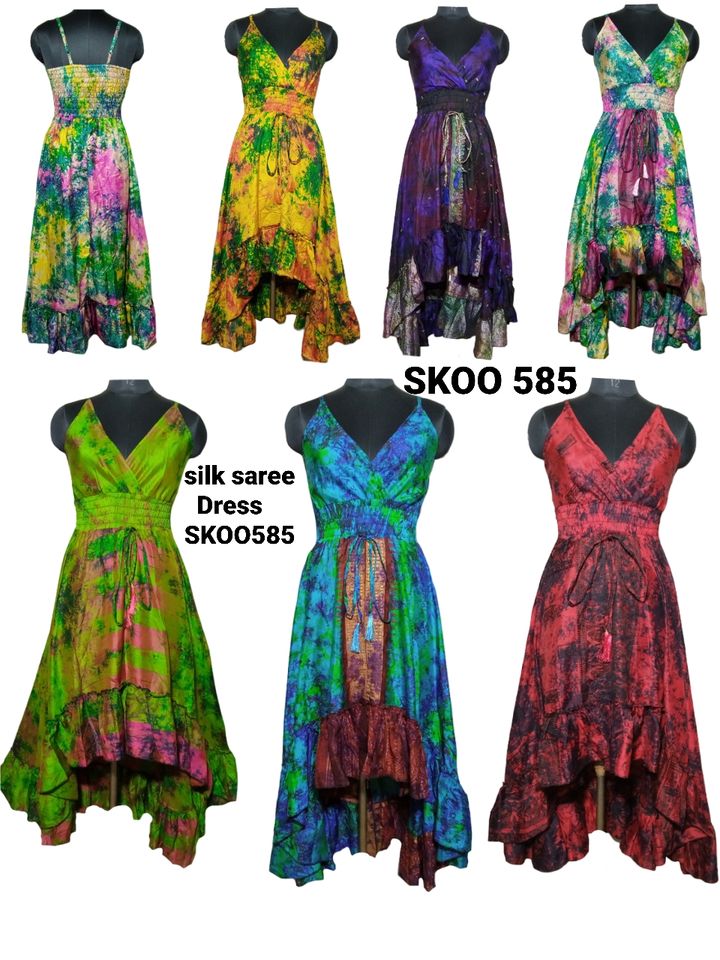 ใหม่ชุดผ้าไหมแท้ป้องกันไฟฟ้าสถิตย์สไตล์โบฮีเมียนชุดมัดย้อมแฟชั่นสูงส่าหรียาวถึงพื้นซักได้พร้อมส่งเอวธรรมชาติ
