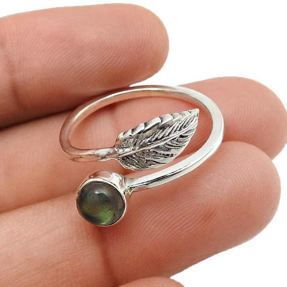 แหวนเงินแท้ 925 สไตล์โบฮีเมียนใหม่ ประดับพลอยลาบราโดไรต์ธรรมชาติทรงกลม งานจิวเวลรี่ระดับไฮเอนด์
