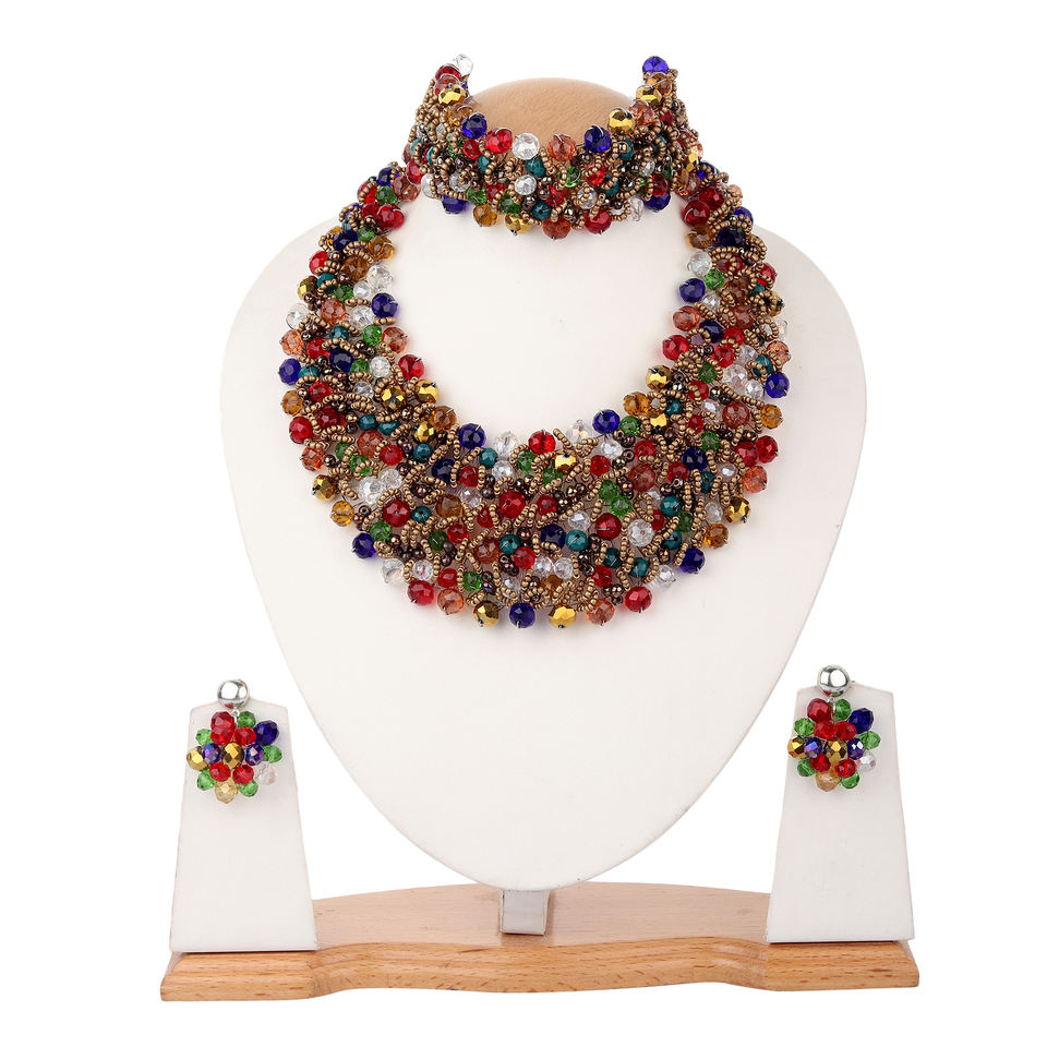 สร้อยคอโชคเกอร์สไตล์โบฮีเมียนใหม่สำหรับผู้หญิง ประดับด้วยลูกปัดหลากสี เหมาะสำหรับงานศาสนา งานปาร์ตี้ และแสดงอารมณ์ ชุบเงิน
