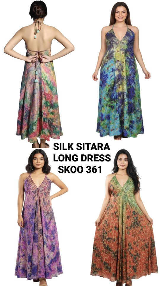 เดรสผ้าไหมหลากสีสไตล์วินเทจโบโฮ100% มาใหม่ปักยาวถึงพื้นดีไซน์ยิปซีดีไซน์วินเทจ