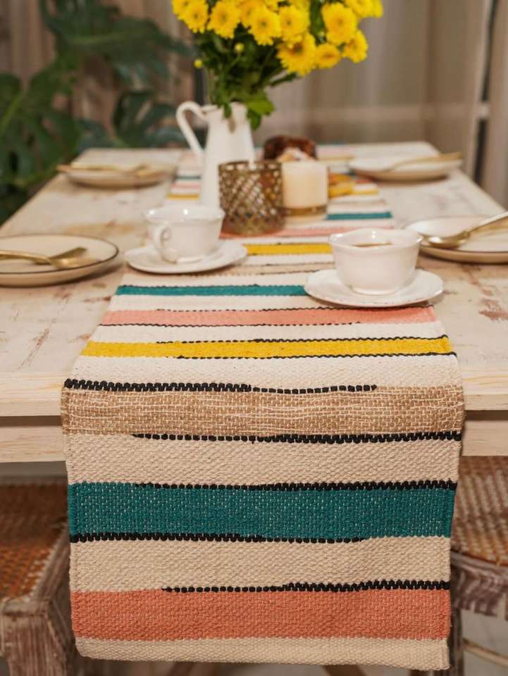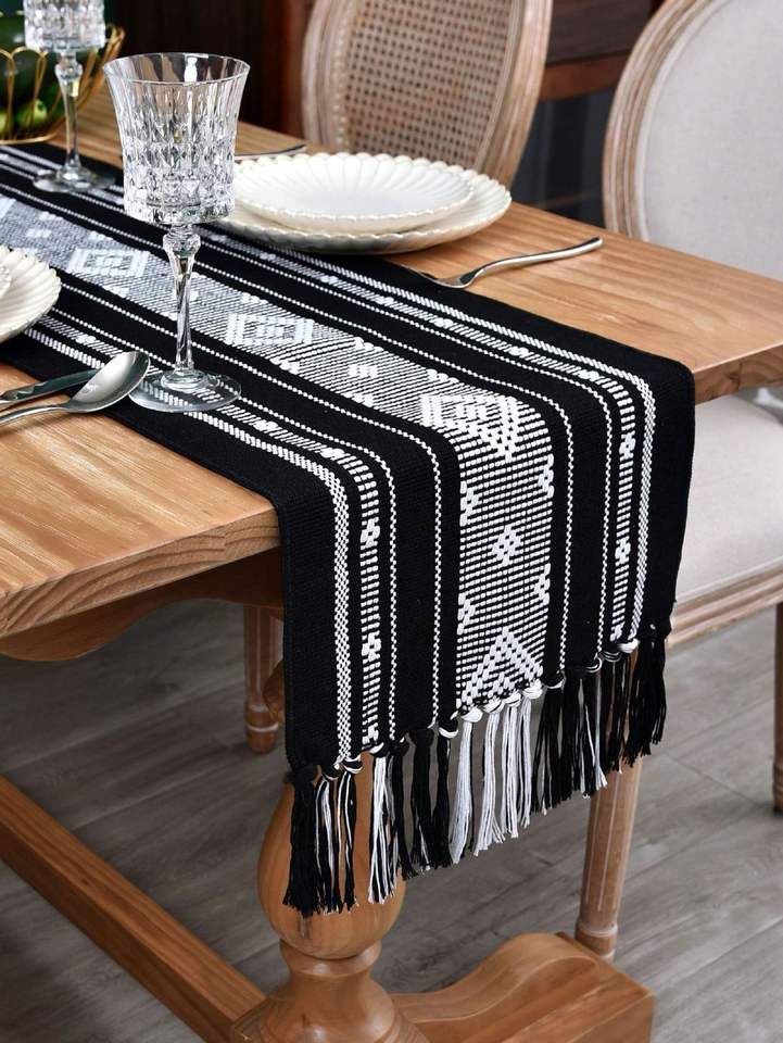 ผ้าคาดโต๊ะนักวิ่งโต๊ะรับประทานอาหารแบบทำมือสไตล์โบโฮผ้าทอประดับบ้านสำหรับห้องครัวบ้านสิ่งทอจาก ithl