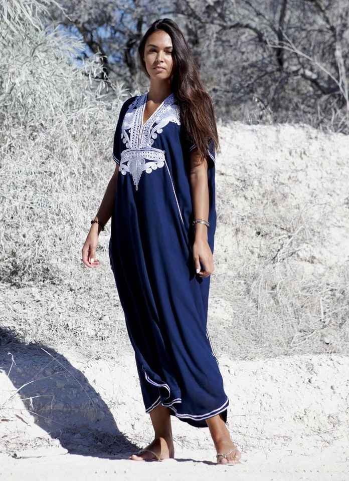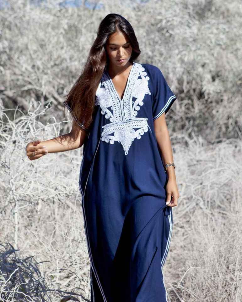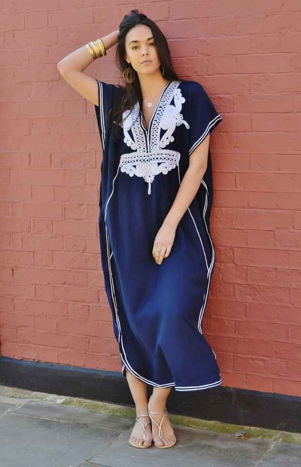New Boho-Inspired Hippie Chic Women's Summer Casual Kaftan Vintage Look Sweet Woven Floral Embroidered Short Natural Solid