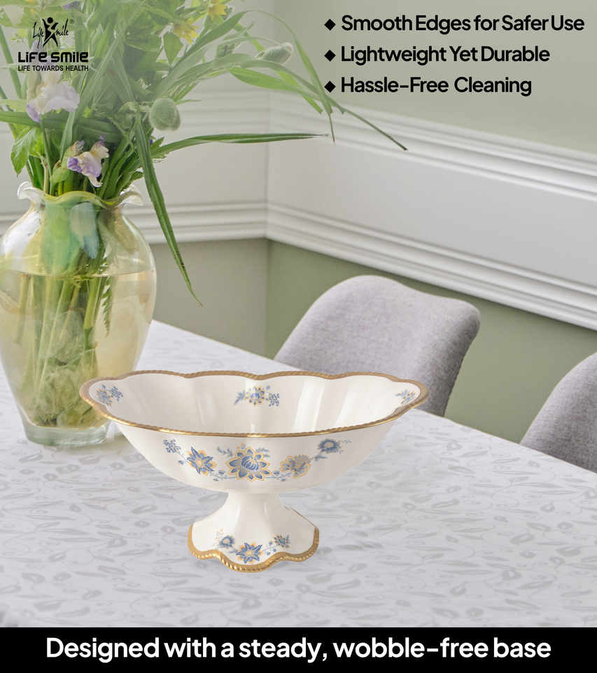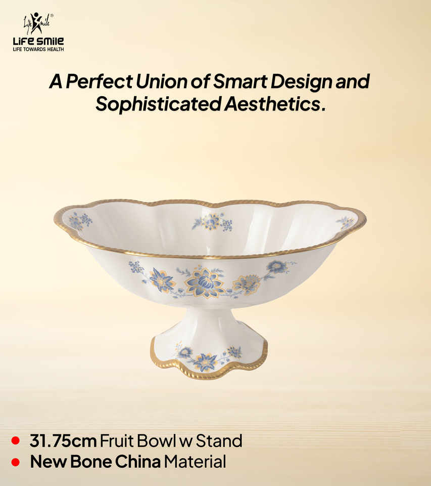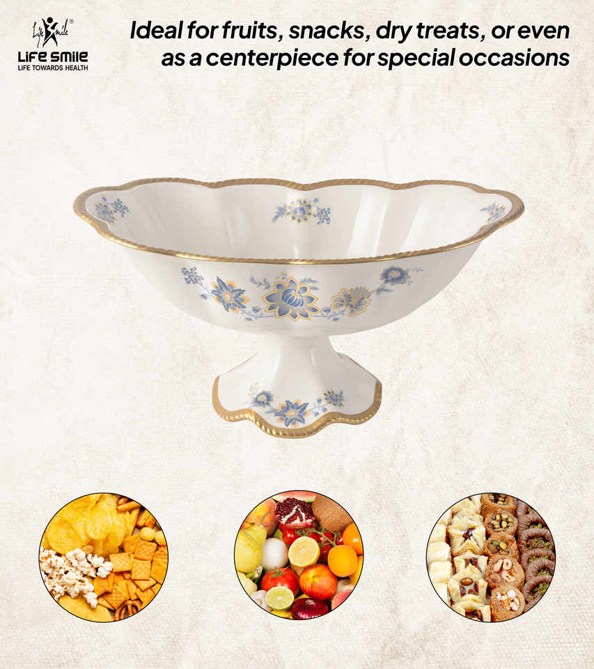 ชามผลไม้เนื้อกระเบื้องโบนไชน่าแบบใหม่ พร้อมขาตั้ง สีขาว ขอบทอง ดีไซน์หรูหราทันสมัย ปลอดสารพิษ