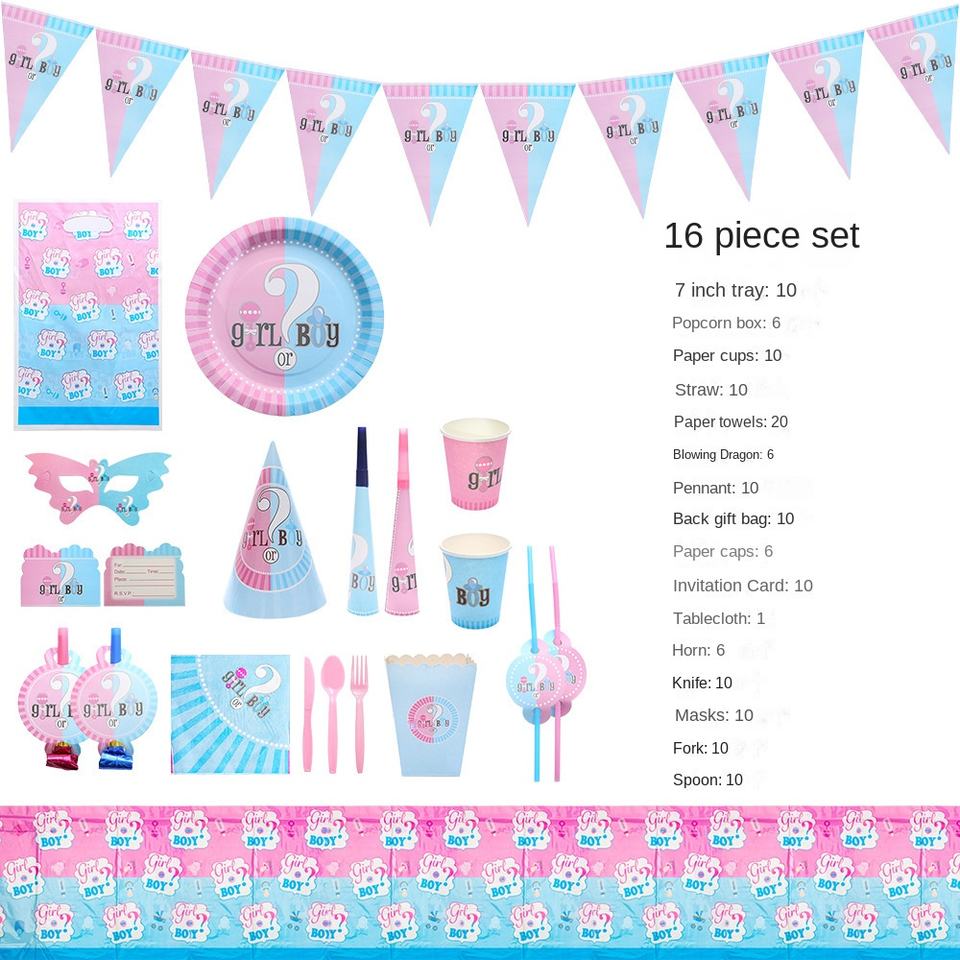 ชุดอุปกรณ์บนโต๊ะสำหรับงานปาร์ตี้วันเกิดเฉลยเพศเด็กชายและเด็กหญิงชื่อสินค้า