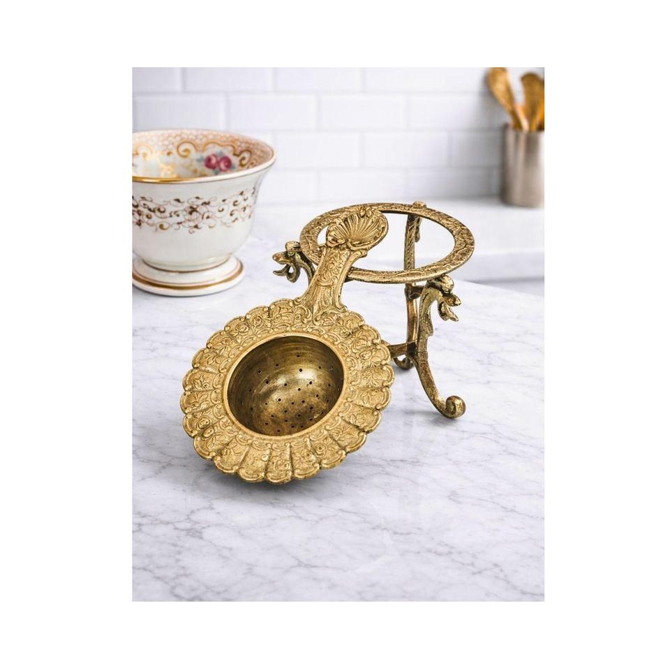 ที่กรองชาแบบตาข่ายทองเหลืองถักมือ
