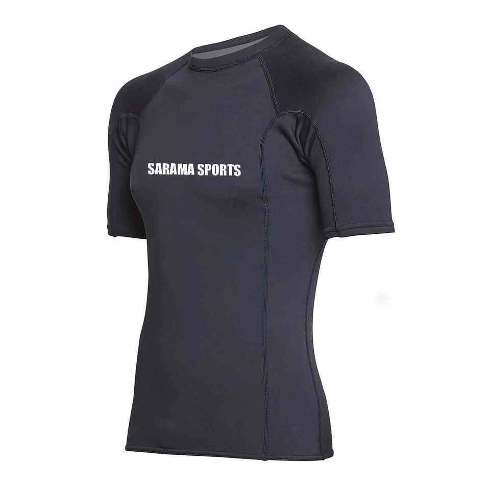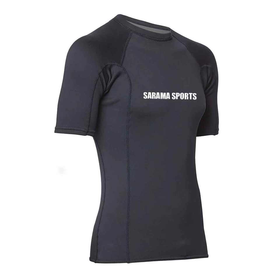 เสื้อรัดกล้ามเนื้อแขนสั้นผ้าโพลีเอสเตอร์ยืดระบายอากาศได้ดี สำหรับกีฬา MMA ออกแบบเองได้ เหมาะสำหรับเล่นเซิร์ฟ วิ่งจ๊อกกิ้ง แห้งเร็ว