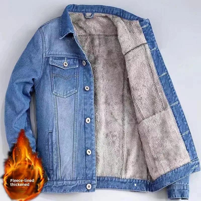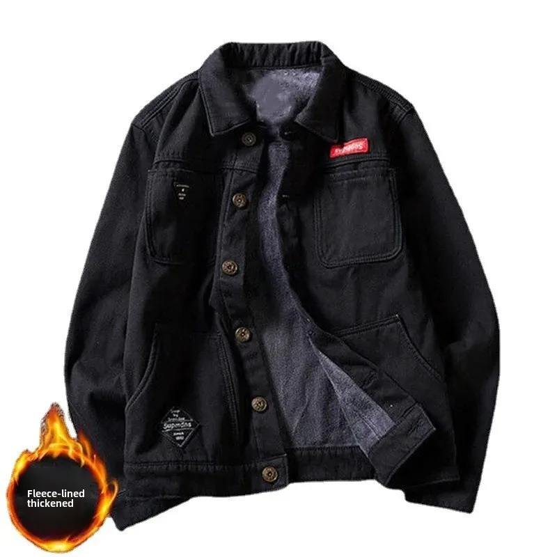 แจ็กเก็ตยีนส์ของผู้ชายผ้าฝ้าย100% พรีเมี่ยมระบายอากาศได้ดีใหม่ให้ความอบอุ่นในฤดูหนาวแจ็คเก็ตผ้าเดนิมปรับแต่งได้สำหรับผู้ชาย
