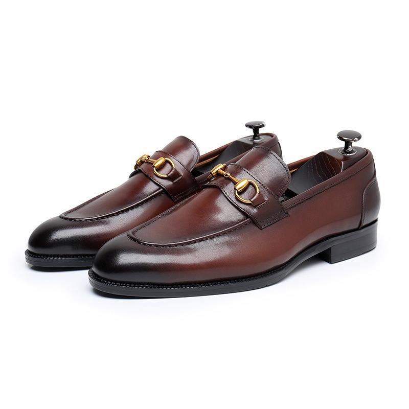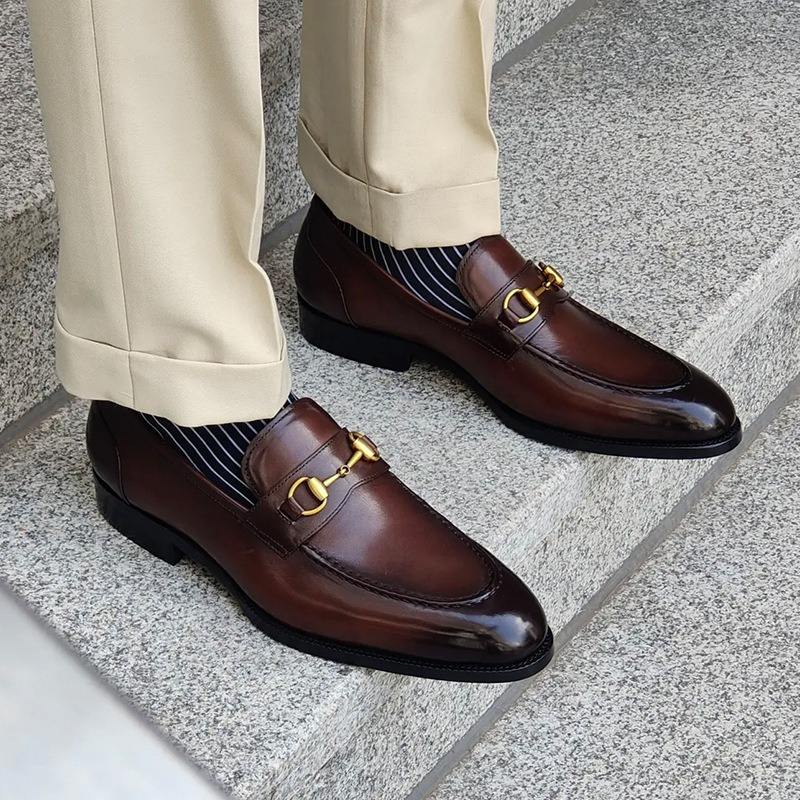 รองเท้าผู้ชายสไตล์อังกฤษใหม่ - รองเท้าหนังแท้ทรงเหลี่ยมแบบผูกเชือก สำหรับใส่ทำงานและลำลอง คุณสมบัติป้องกันการลื่นและระบายอากาศได้ดี
