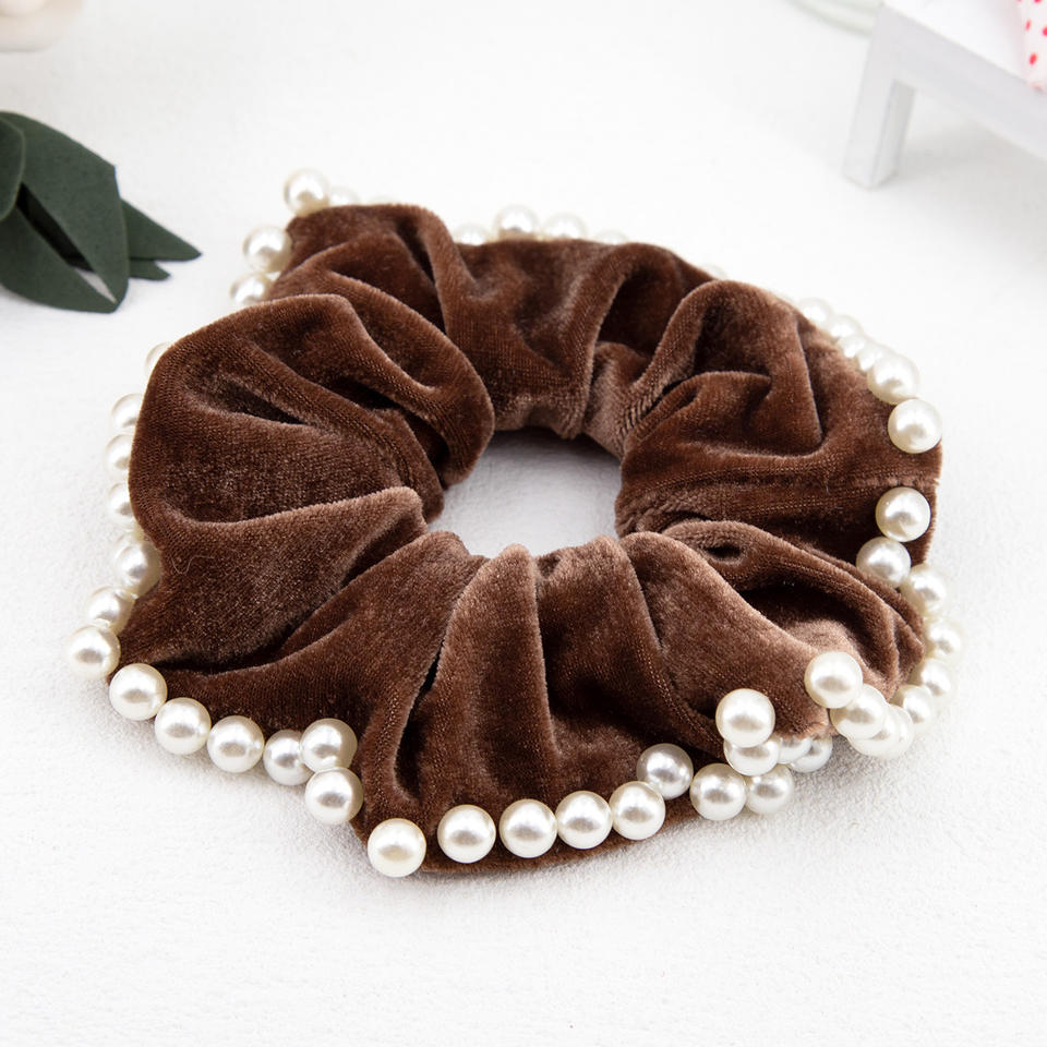ยางมัดผมสำหรับผู้หญิงสีน้ำตาลสีดำยางรัดผมมุกดีไซน์ใหม่
