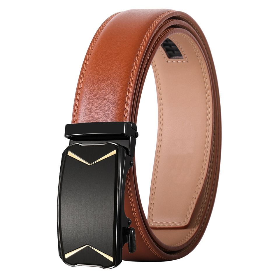 เข็มขัดหนังวัวแท้สำหรับผู้ชายใหม่เข็มขัดอัตโนมัติหนังวัวแท้สีน้ำตาลออกแบบหรูหรา