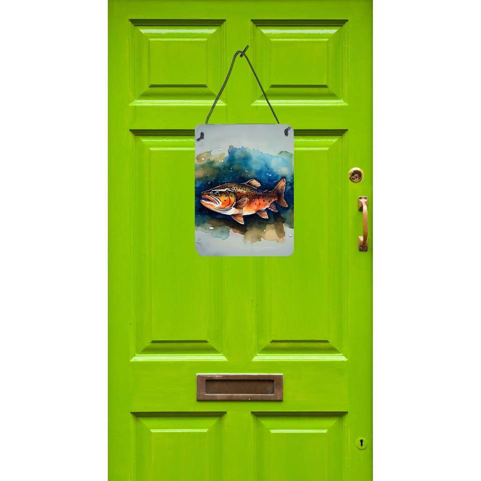 ป้ายโลหะติดผนังลายปลาเทราท์สีน้ำตาลแบบแขวนหลากสี12X16ป้ายโลหะอลูมิเนียมสำหรับตกแต่งห้องครัวบาร์บ้านแผ่นประตูหน้า