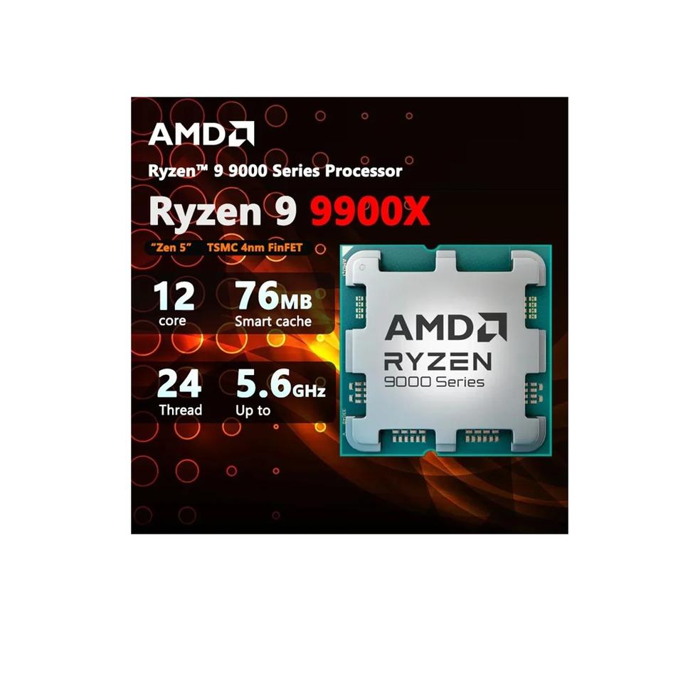 ซีพียู Ryzen 9 9900X รุ่นใหม่ สำหรับเดสก์ท็อป 12 คอร์ 24 เธรด ความเร็ว 4.4GHz-5.6GHz หน่วยความจำ L2=12M L3=64M เหมาะสำหรับเล่นเกม