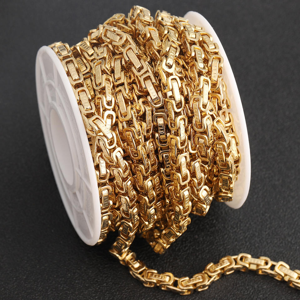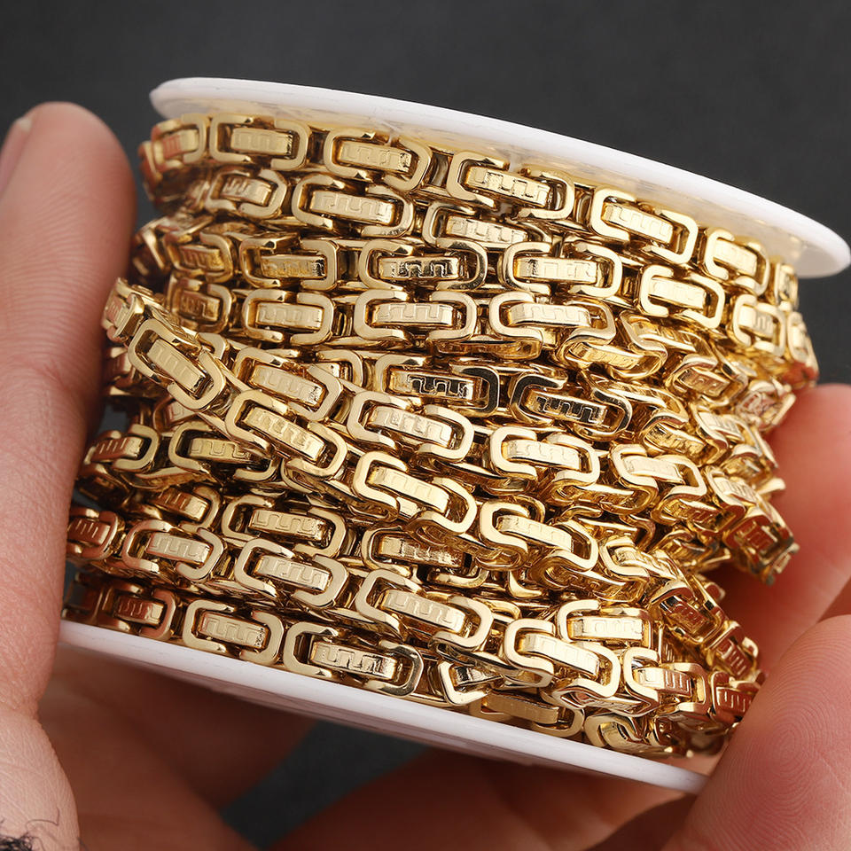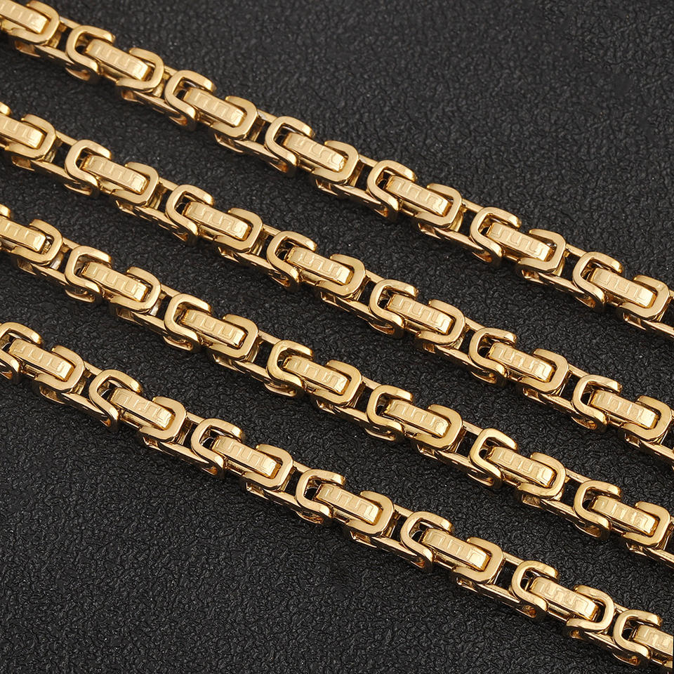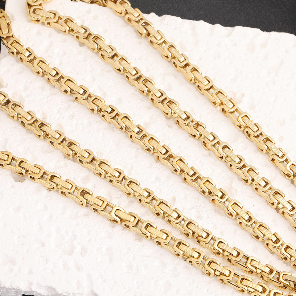 New Bulk Tarnish-free 18K Gold Plated 316L Stainless Steel 5mm Men's Chunky Great Wall Pattern Emperor Byzantine Box Chain